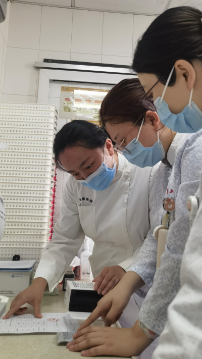下午16:30,干細胞項目樣本質(zhì)檢結(jié)束,結(jié)果顯示通過。護士們開始干細胞復(fù)溫、信息核對及干細胞輸注前的準(zhǔn)備工作,10分鐘后項目組相關(guān)的老師都抵達病房,一起見證第一例干細胞的輸注。
