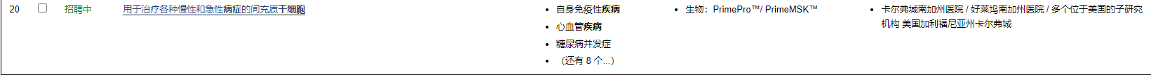 在ClinicalTrail上注冊的干細胞治療AD臨床研究還有20余項