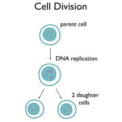 大多數(shù)細(xì)胞分裂。在分裂前不久,DNA復(fù)制,然后細(xì)胞分裂成兩個(gè)子細(xì)胞。每個(gè)細(xì)胞都有原始細(xì)胞的 DNA、細(xì)胞質(zhì)和細(xì)胞膜的完整副本。