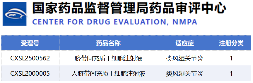 9月28日,國(guó)家藥監(jiān)局的一則公示,為類(lèi)風(fēng)濕關(guān)節(jié)炎的細(xì)胞治療賽道再添一把火。新藥品CXSL2500562臍帶間充質(zhì)干細(xì)胞注射液正式獲準(zhǔn)進(jìn)入臨床,劍指RA。[10]