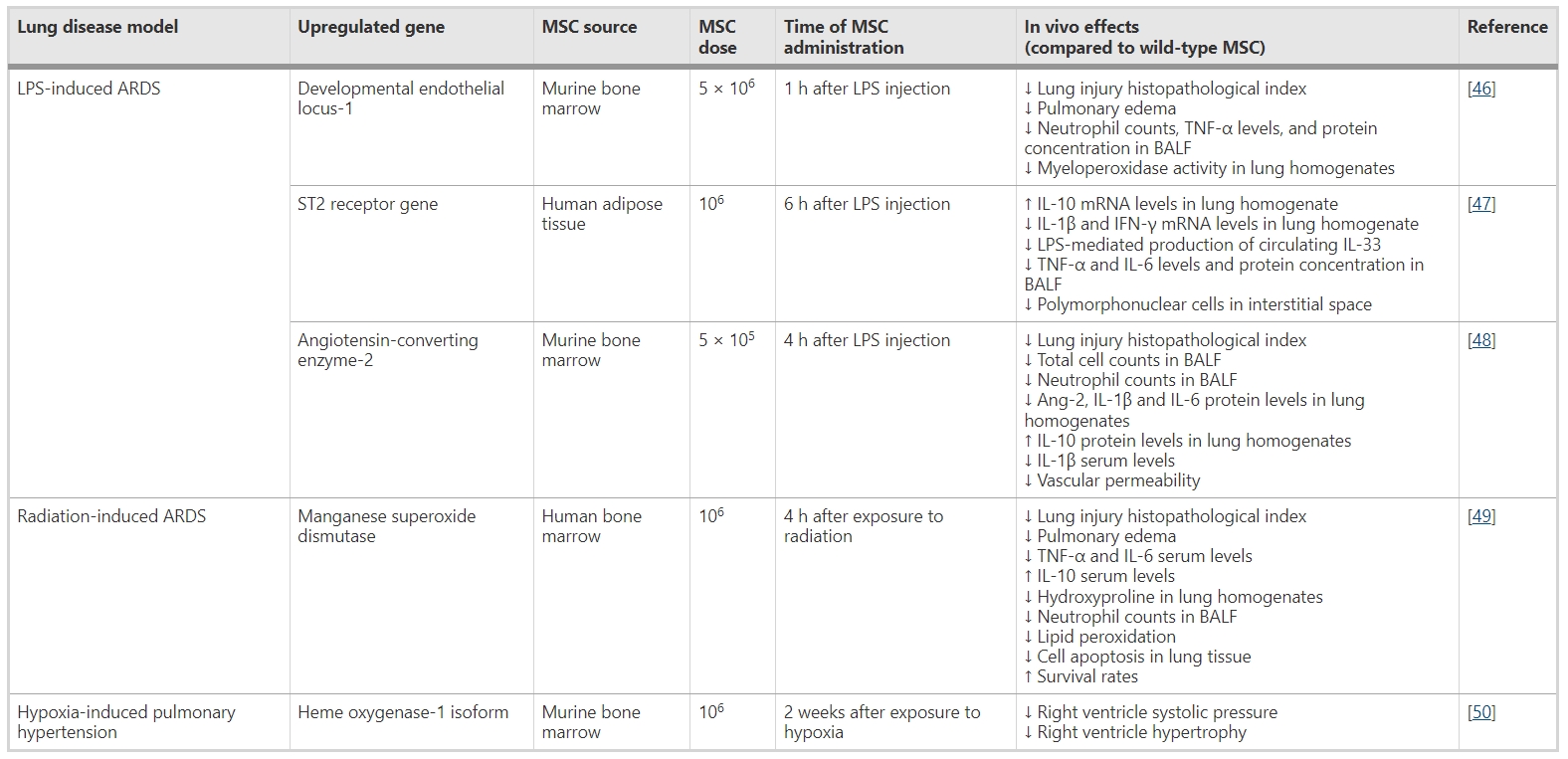 參考資料:Silva, L.H.A., Antunes, M.A., Dos Santos, C.C.?et al.?Strategies to improve the therapeutic effects of mesenchymal stromal cells in respiratory diseases.?Stem Cell Res Ther?9, 45 (2018). https://doi.org/10.1186/s13287-018-0802-8