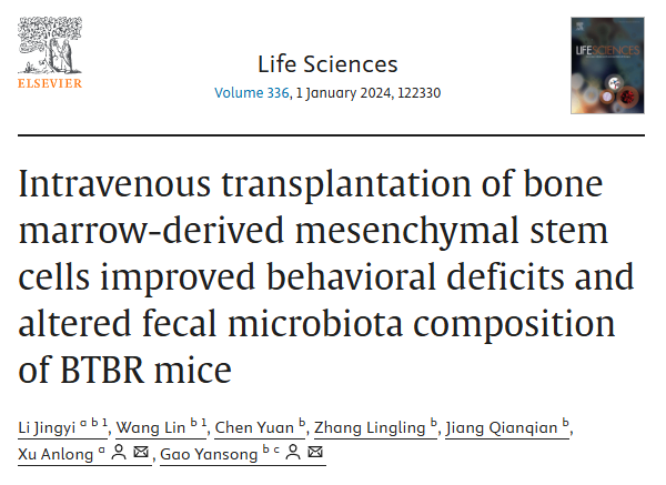 2023年12月3日,九芝堂美科在國際知名學(xué)術(shù)期刊《Life Sciences》發(fā)表研究論文《骨髓間充質(zhì)干細(xì)胞靜脈移植改善BTBR小鼠的行為缺陷并糾正其糞便微生物群組成》,關(guān)于人骨髓間充質(zhì)干細(xì)胞(hBMMSC)治療自閉癥的臨床前藥效學(xué)研究。