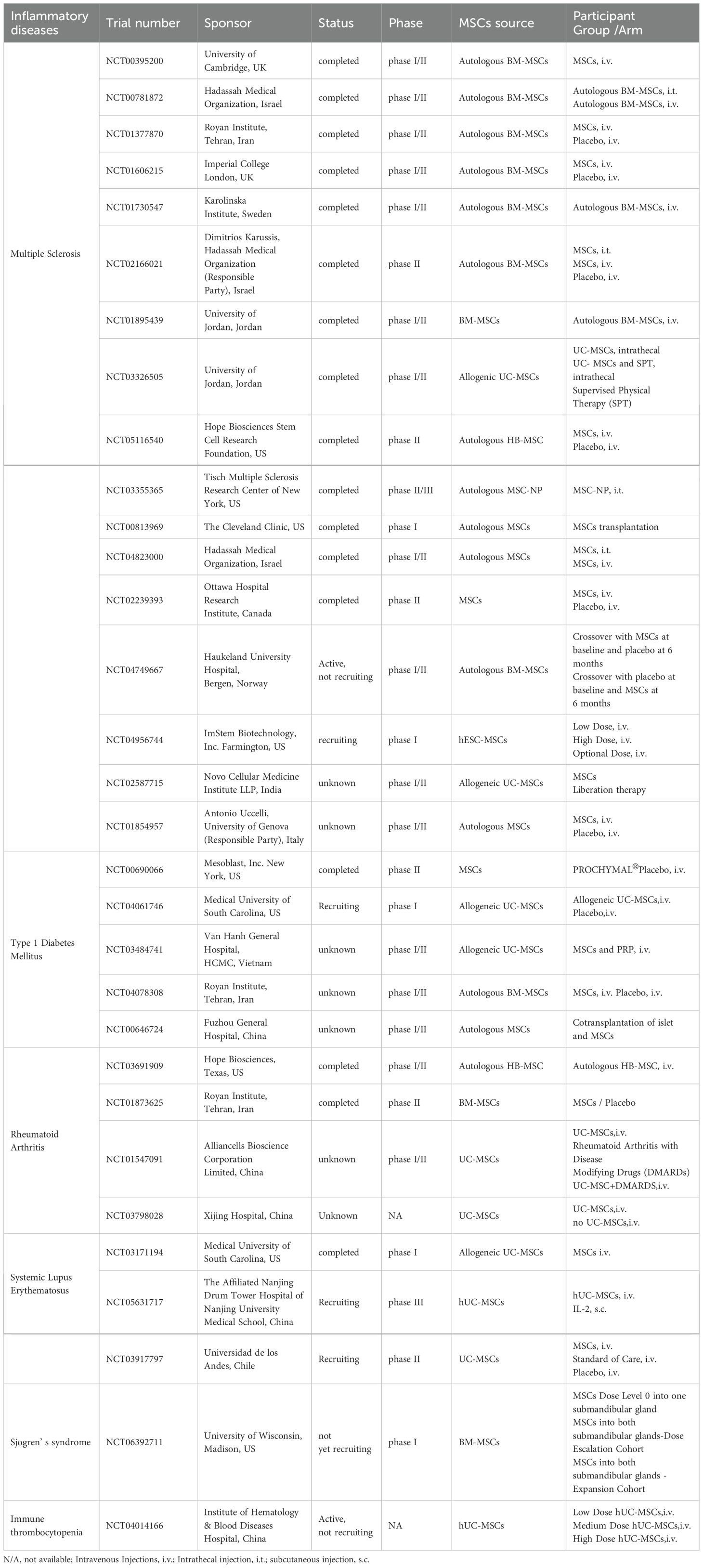 表1:間充質干細胞治療自身免疫性疾病的注冊臨床試驗。