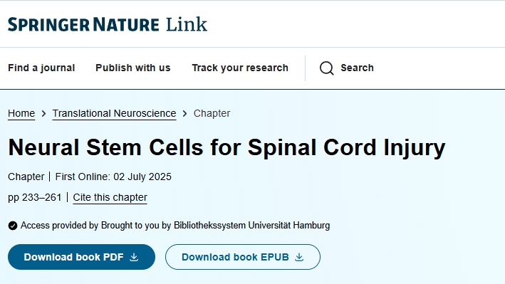參考資料:[1]:Lu, P., Sinopoulou, E., Rosenzweig, E.S., Blesch, A., Tuszynski, M.H. (2025). Neural Stem Cells for Spinal Cord Injury. In: Tuszynski, M.H. (eds) Translational Neuroscience. Springer, Cham. https://doi.org/10.1007/978-3-031-89307-0_14