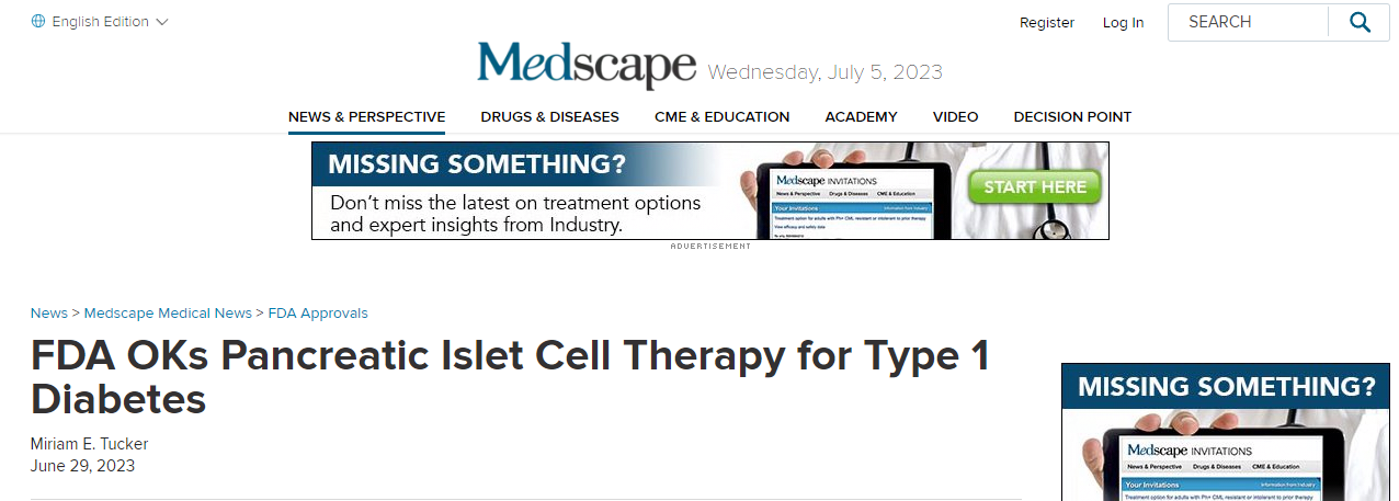 近日,F(xiàn)DA批準Lantidra,首個治療1型糖尿病的細胞療法。