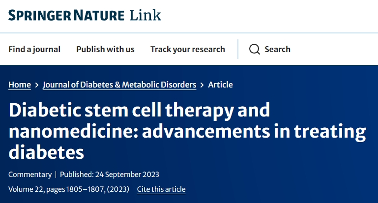 近期發表在權威期刊《Journal of Diabetes & Metabolic Disorders》的一項研究,卻給糖尿病治療帶來了令人興奮的新希望——干細胞聯合納米醫學治療糖尿病。鑒于傳統的糖尿病治療方法在提供長期解決方案方面效果有限,因此研究人員開始探索替代療法,例如糖尿病干細胞療法和納米醫學。在本文中,我們將深入探討這些尖端療法的潛力及其對糖尿病管理的影響。