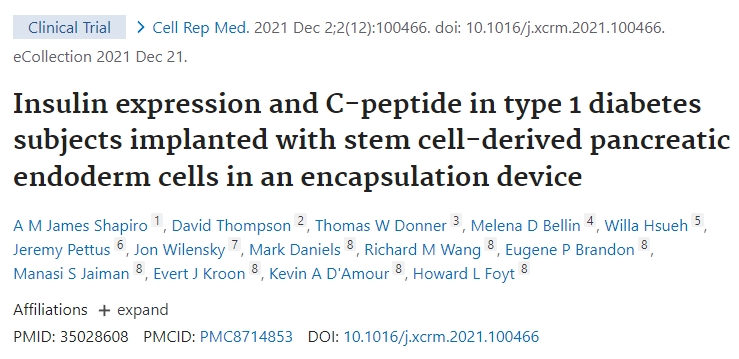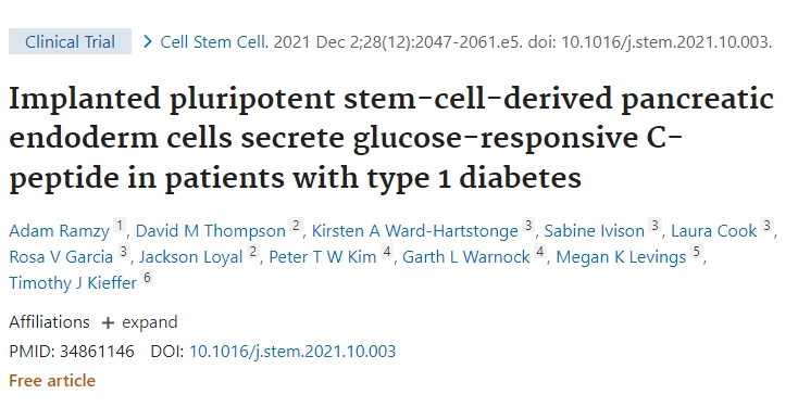 2021年,兩項研究報告了這些正在進行的多中心 I/II 期臨床試驗的初步結果,涉及兩組各15名和17名1型糖尿病患者。