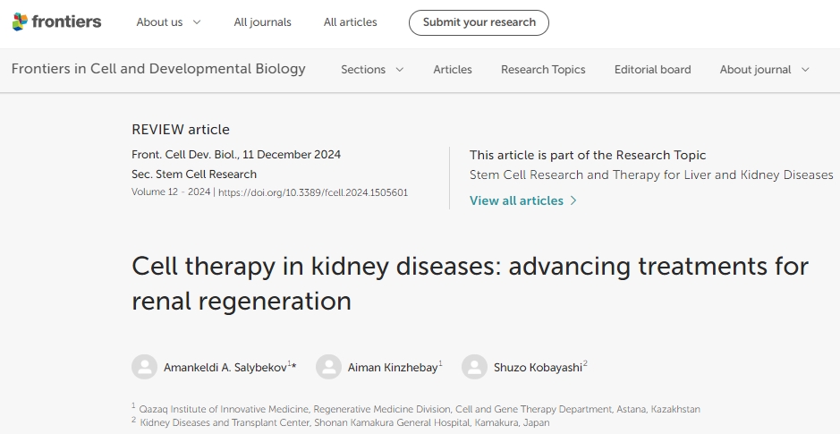 近日,期刊雜志《Frontiers in Cell and Developmental Biology》發表了一篇“Cell therapy in kidney diseases: advancing treatments for renal regeneration”的期刊綜述。該綜述全面概述了腎臟疾病細胞療法的現狀,追溯了從臨床前研究到臨床應用的進展[1]