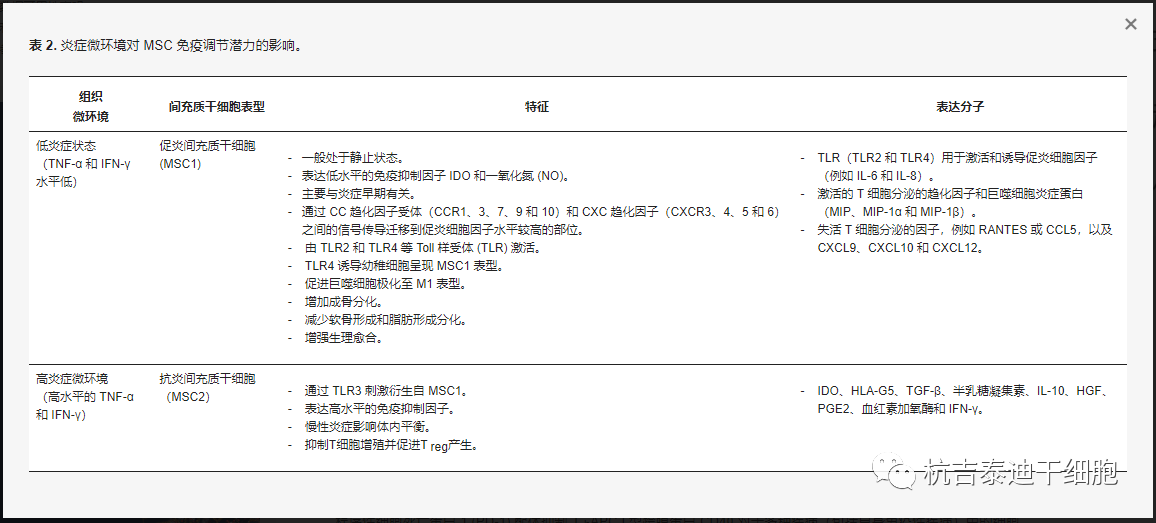 表2:炎癥微環(huán)境對MSC免疫調(diào)節(jié)潛力的影響。