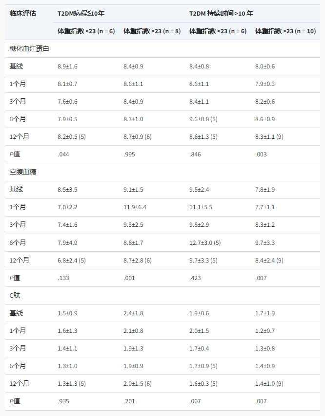 總之,結(jié)果表明該療法的短期療效以及與T2DM持續(xù)時(shí)間和患者BMI的強(qiáng)相關(guān)性。