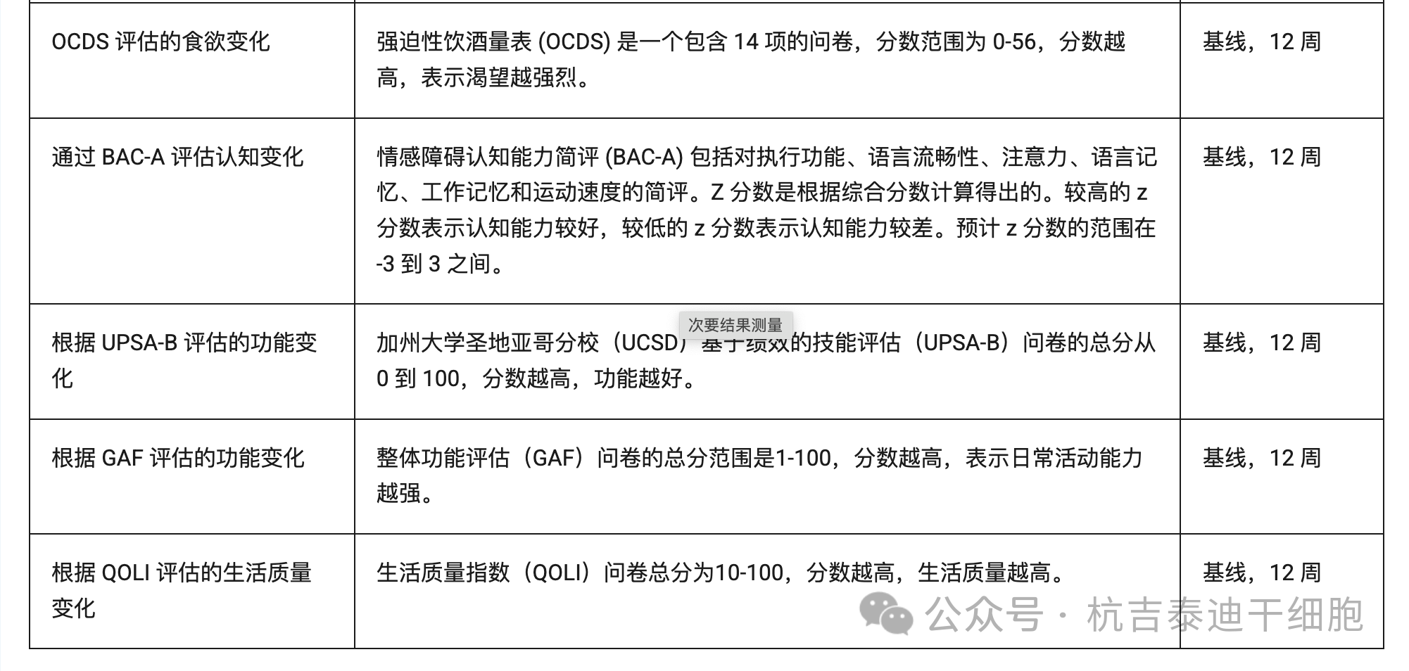 臨床試驗(yàn)二:同種異體人類間充質(zhì)干細(xì)胞輸注與安慰劑在酒精使用障礙和重度抑郁癥中的比較