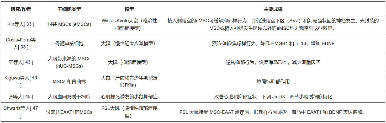 干細(xì)胞療法為治療抑郁癥患者帶來新希望:從臨床前證據(jù)到早期臨床試驗