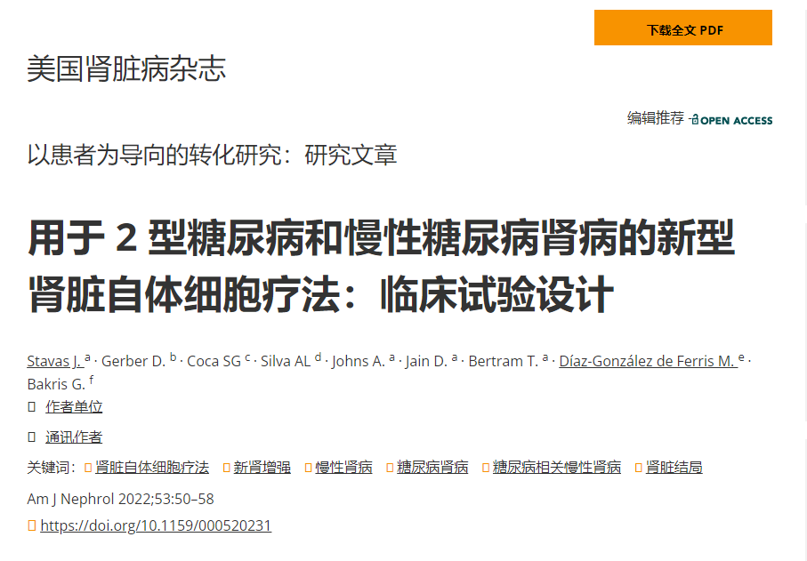 背景:干細胞療法探索慢性腎病患者未滿足的臨床需求,并有可能改變通往終末期腎病的途徑。我們描述了一項II期多中心臨床試驗的設計和基線患者特征,該試驗利用新型腎臟自體細胞療法 (REACT),通過經皮入路直接腎實質注射治療患有2型糖尿病腎病 (T2DKD) 的成人,以延遲或可能避免腎臟替代治療。