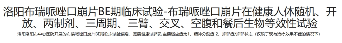 2025年7月22日,北京康立生醫藥技術開發有限公司的布瑞哌唑口崩片在健康人體中的生物等效性試驗(臨床試驗登記號:CTR20252926)。該藥物適應癥為抑郁癥和精神分裂癥,其口崩片劑型設計旨在提升用藥便利性與患者依從性。[2]