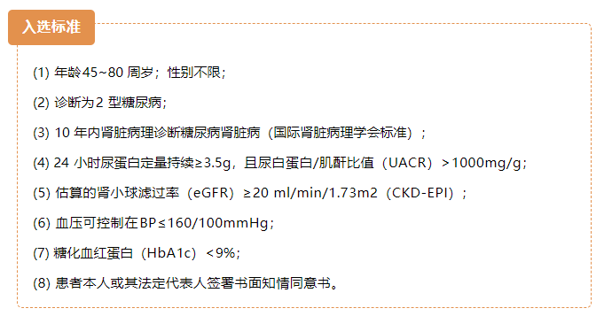 為了讓更多患者受益,本次臨床研究目前正在面向廣大糖尿病腎病患者招募志愿者,具體招募標準如下: