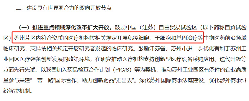 作為全球生物醫藥的前沿方向,免疫細胞治療、干細胞再生醫學和基因治療近年來備受關注。商務部此次明確提出支持符合資質的醫療機構按照相關規定開展這些技術的臨床研究,并對研究者發起的臨床研究給予政策鼓勵。這不僅降低了前沿技術從實驗室走向臨床的門檻,也為廣大從業者提供了更多探索未知領域的空間。這一政策利好,不僅僅是對蘇州工業園區的支持,更體現出我國在生物醫藥領域的全面布局。從頂層設計的高度出發,政策目標直指全球生物醫藥技術的競爭前沿,意在打造中國生物醫藥技術和產業的“硬核力量”。